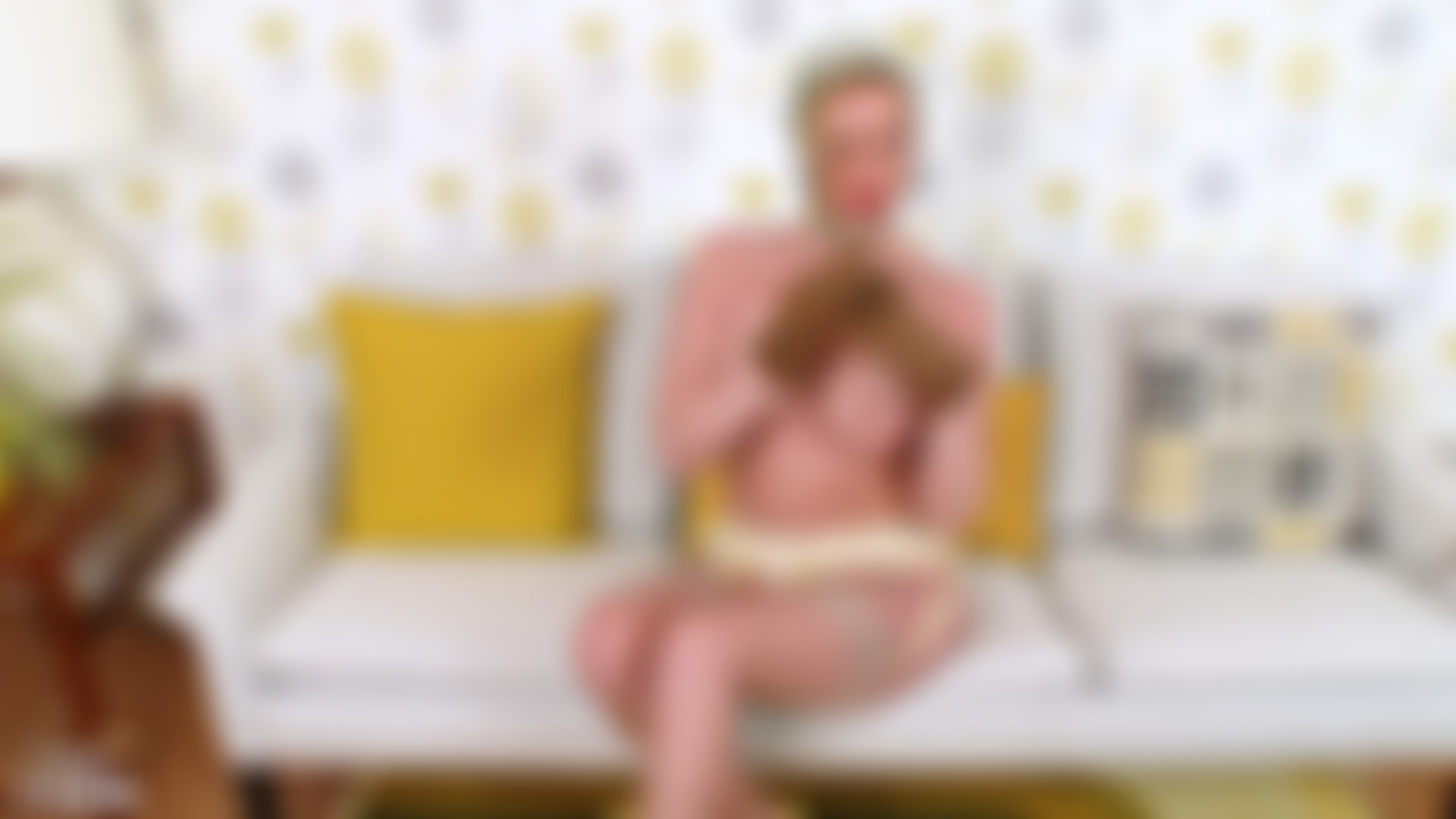 Such a thrill a woman with bare wet pussy showing all off! Lucky she's keen on more pussy flashing on the sofa! HD : 1080p